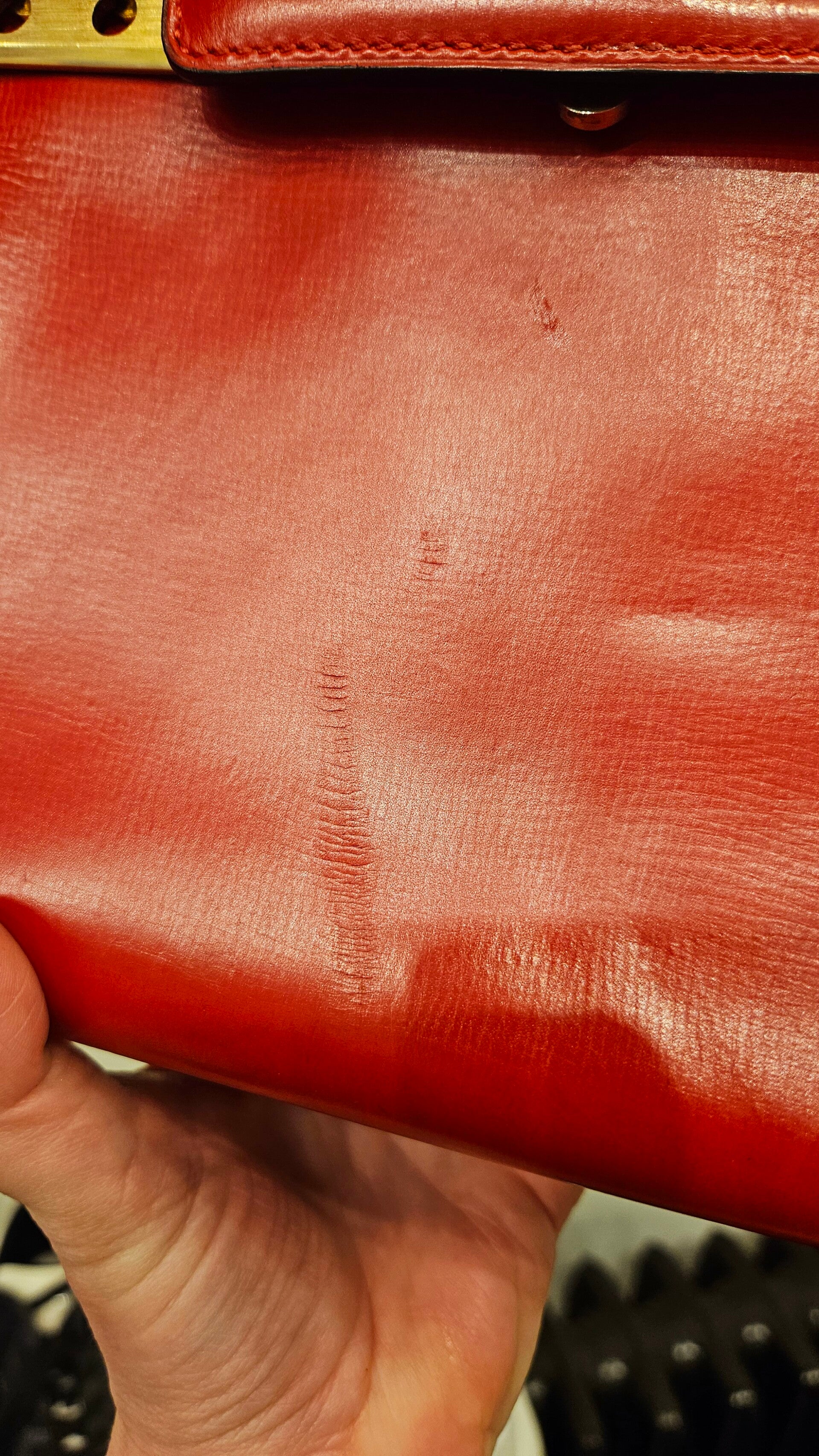 Ik werkte enkel de hoekjes wat bij, gaf haar een grondige bag spa, nieuwe kantverf en voorzag de hardware van nieuw laagje 18k goud.